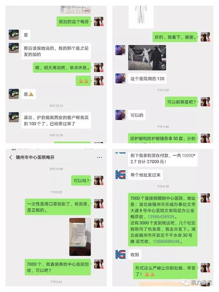 速度就是生命! 2月7日,公司所在地湖北随州确诊病例915例,感染人数位居全国第四,高峰时期一天达到180例之多,人均比列已超过黄冈全国第二,数据成倍增长。面对当前严峻的防疫形势,2020年2月4日,凯力专汽董事长梁杰先生在全国医疗物资紧缺的条件下,想方设法通过各种渠道联系购买医疗物资,对口支援随州市中心医院,据了解,此次凯力专汽从湖北仙桃及陕西西安分别购回10000个医用口罩、50套防护服及50套护目镜实行定点捐助,后续,公司将实时保持与医疗物资供应商保持联系,在保证重灾区的供应基础上,再做协议购买捐赠事宜。