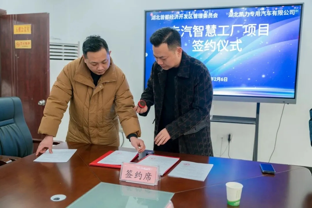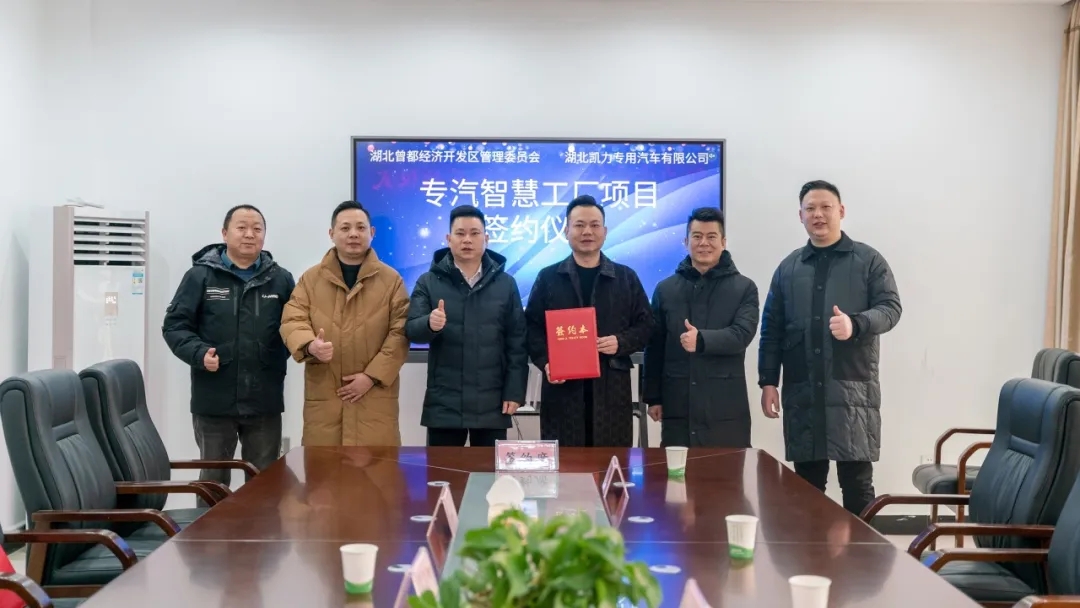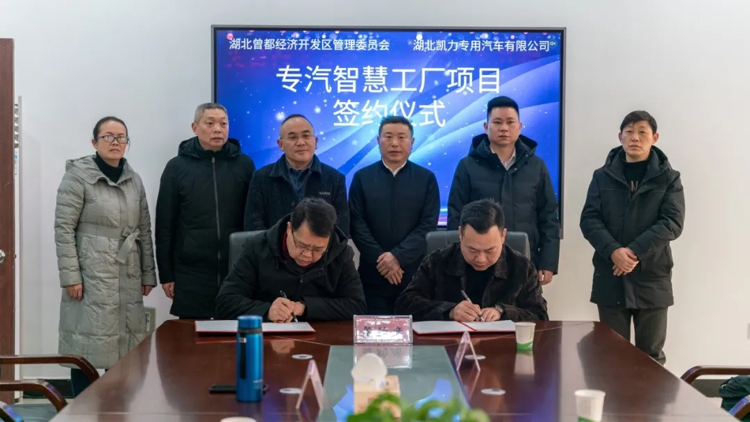 2024年2月6日,湖北凯力专用汽车有限公司与湖北曾都经济开发区管委会“专汽智慧工厂项目”签约仪式隆重举行。集团董事长梁杰、总经理梁俊等公司领导,曾都区副区长罗俊涛、区科经局、区招商服务中心、北郊街道办事处相关负责人出席签约仪式。