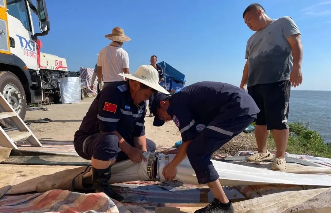 在监测过程中,如果出现异常情况需要处理,那也是钟超的工作内容。给发电机加油,更换机油机滤,更换机器零部件等等。堤坝上三四十度的高温天气,又晒又热,脸上的汗水几乎没干过,汗珠经常会滴在他记录数据的本子上。他本可以去驾驶室里坐一下,躲避一下日晒,但他在监测设备的间隙,却是下水协助队员做接水带、安放潜水泵和电缆等工作。