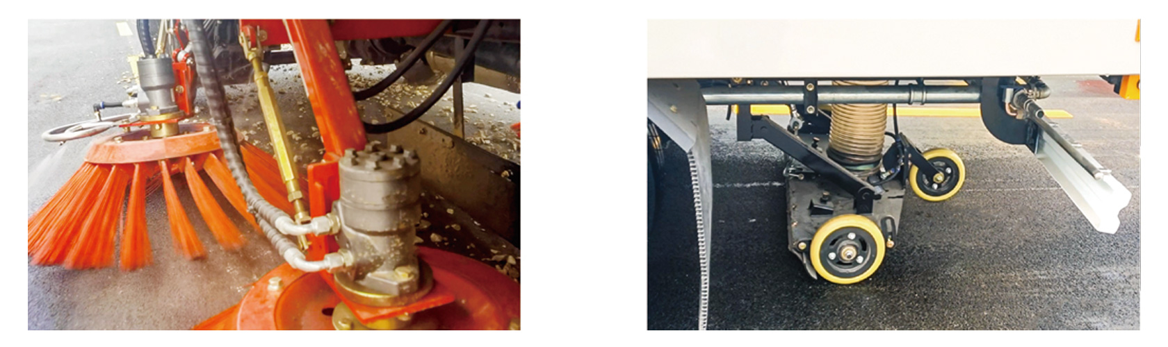 超强聚尘技术:优化吸嘴内部气体流场及结构设计,吸拾能力提高10%。“中置四盘刷+后置吸嘴”设计,车辆行驶过程中,自动向内旋转将垃圾聚集至车辆中部,方便扫路车尾部一次性将所有垃圾全部吸入车厢内,提高整体洁净率。管路稳固技术:威森搏乐液压阀组,数控冷弯精密无缝钢管,液压管路采用国际先进的卡套式接头,确保整车液压动作的稳定性和流畅性,大大降低液压系统的故障率。人性化设计:超宽后门,大于85度的开启角度,垃圾箱倾翻角度大于40度,更易于倾倒垃圾、垃圾箱的清理。