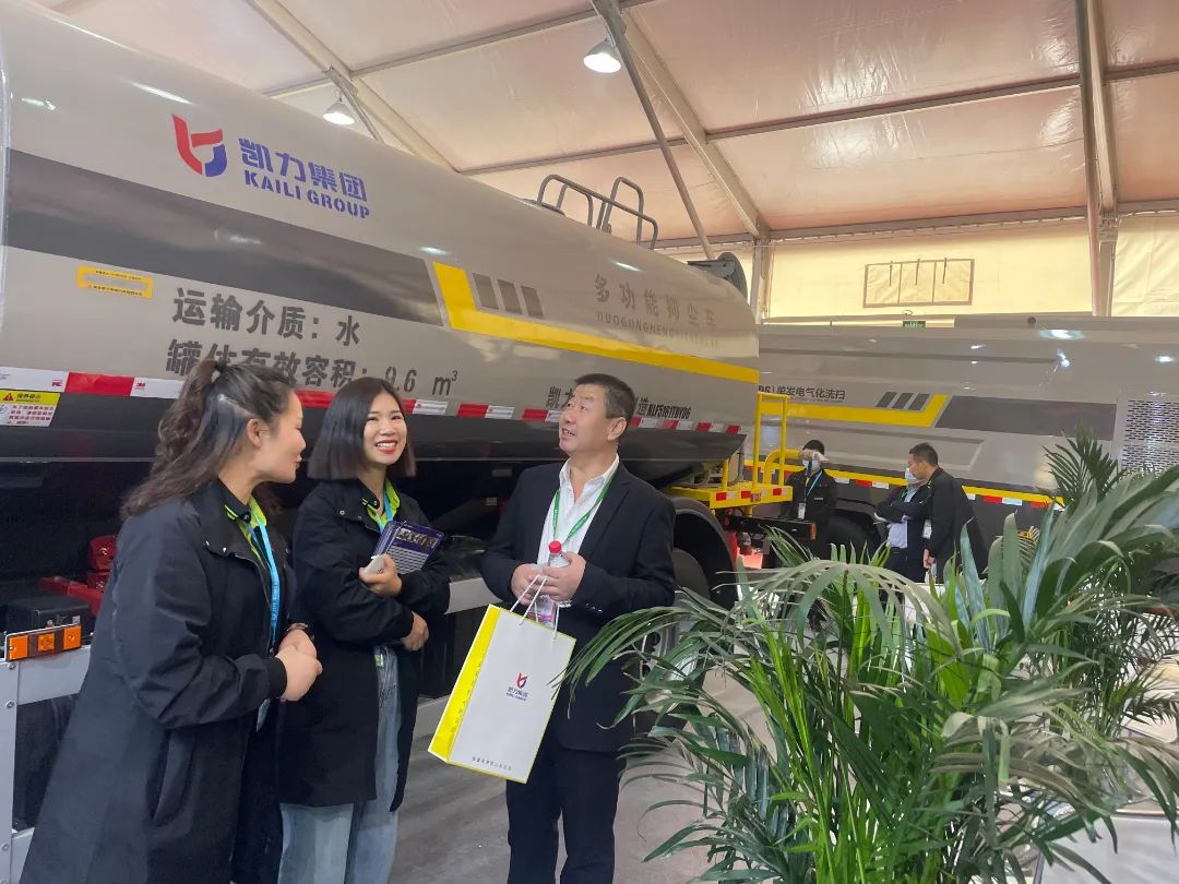 凯力专汽紧跟“碳中和”发展方向,推进生态文明建设,守护蓝天绿水,第四代新款抑尘车无论是在工艺上还是功能上积极创新升级,超高颜值五大优势领冠全场。国内首条标准化生产线装配,模块化设计,全程无焊接;罐体国内顶尖电泳涂装工艺,色泽持久硬度高,防腐防锈十年无忧超级耐用;结构件静电喷粉,光亮如新永不退色,硬度极高永不掉漆;车辆功能齐全,颜值高端,质量可靠,细节最优;24小时全天候售后服务团队,凯力售后服务体系业内知名,有口皆碑,为您使用爱车保驾护航。展会现场对新款抑尘车咨询的客商络绎不绝,展车更是被客商现场抢购,展会一结束连夜送到客户手中,再次体现了凯力汽车集团优质高效的服务。