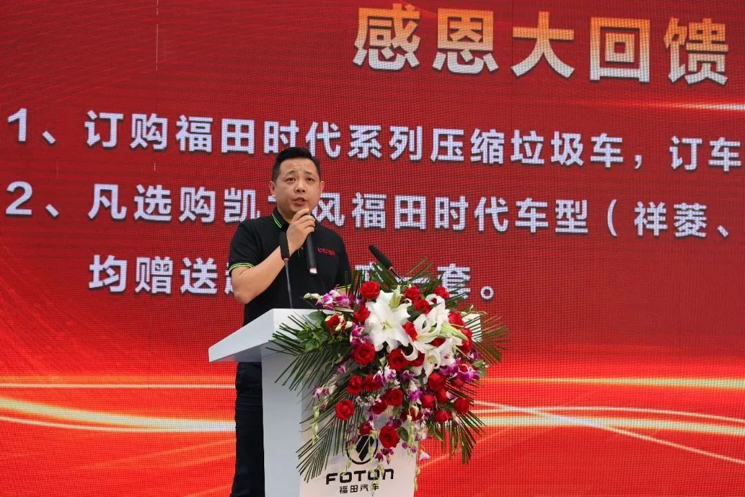 大会最后,由福田汽车集团时代事业部专底营销公司总经理 王小凯做总结发言,他指出,2023年是崭新的一年,是市场全面复苏后一个充满希望和期待的一年,福田时代专底将继续以客户满意为目标,与广大销售经理“同舟共济”,抢抓市场促销量,力争全年完成一万台销售目标的宏图大志。